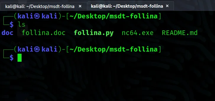 - On the attack machine, download the follina POC from https://github.com/JohnHammond/msdt-follina and clone the repository to a folder named msdt-follina on the Desktop.