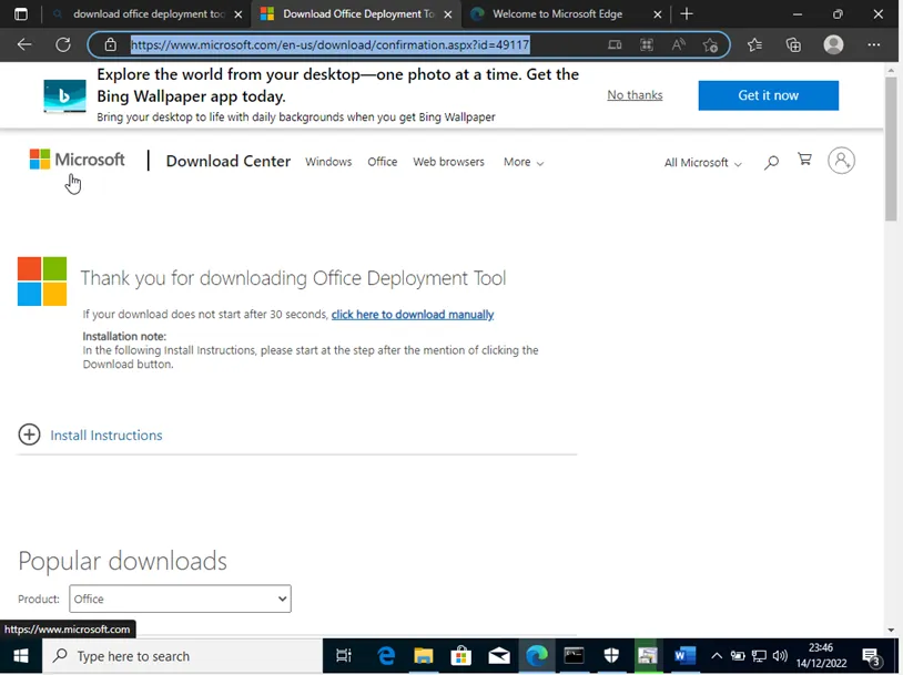 - Download and install MS Office Suite on your victim machine from https://www.microsoft.com/en-us/download/confirmation.aspx?id=49117 . Extract the setup.exe and install it from command prompt using the command