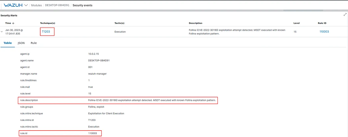 In summary, this article has explained how to exploit and detect CVE-2022–30190 aka Follina vulnerability which was made possible using a custom rule that would be triggered whenever a Microsoft Office application tries to spawn a new process.