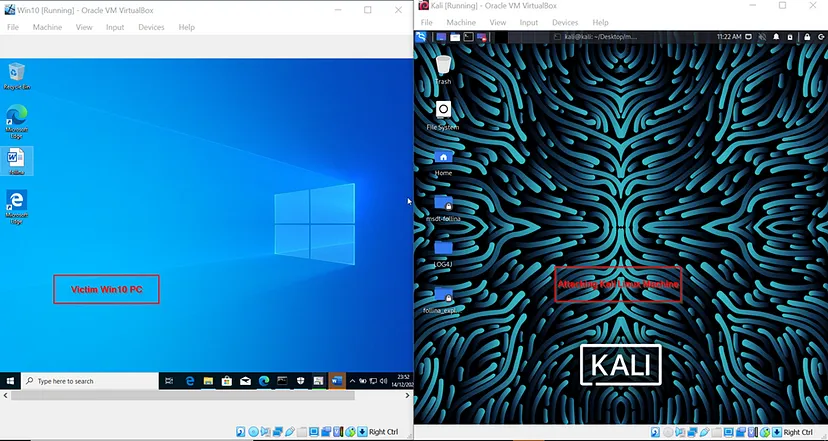 To successfully demonstrate this exploit, I set up an environment with Kali Linux VM (attacker VM) and Windows 10/11 with Microsoft Office installed as the victim VM.